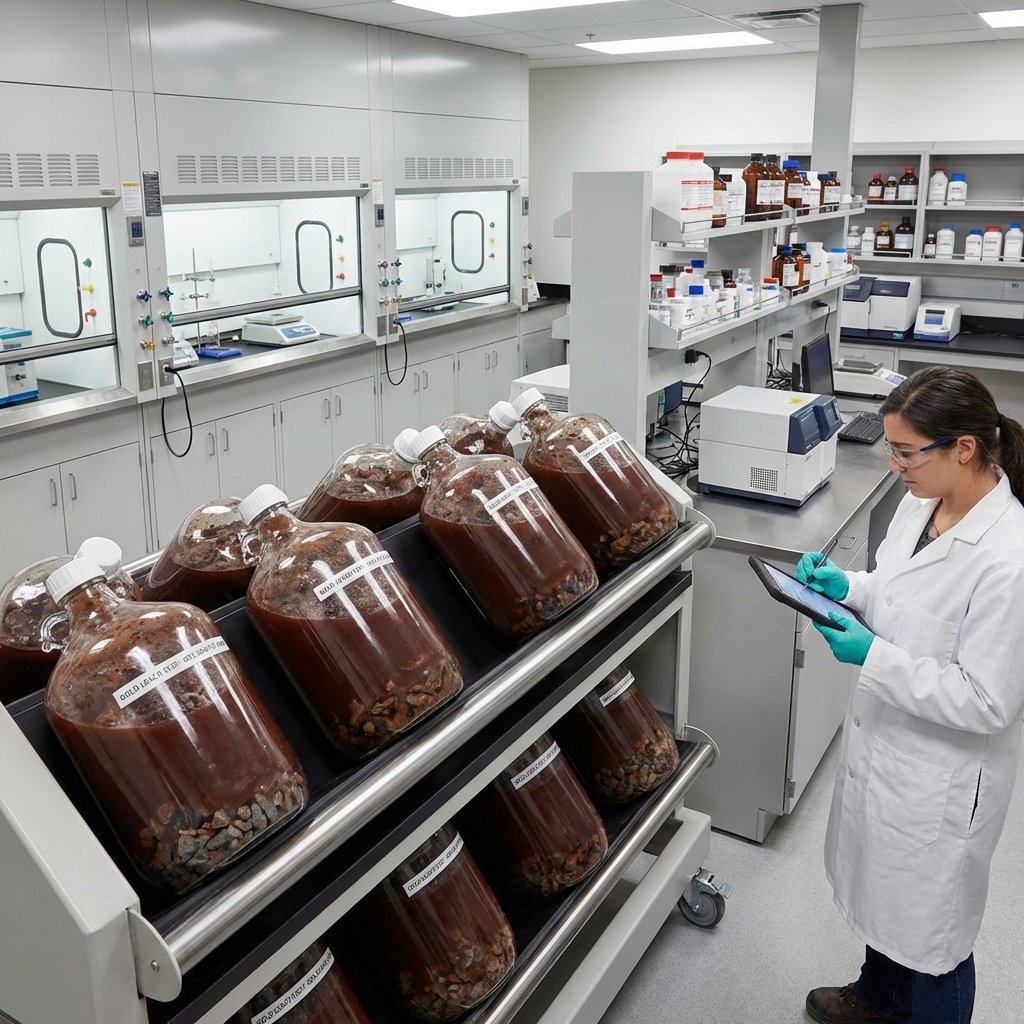 Desarrollamos pruebas metalúrgicas a nivel de laboratorio para optimizar procesos de recuperación.